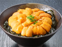 うに丼にする場合、リンゴなどを食べるときに使う先のとがったフルーツフォークでウニをきれいに並べると、プロ化おまけの丼になります!